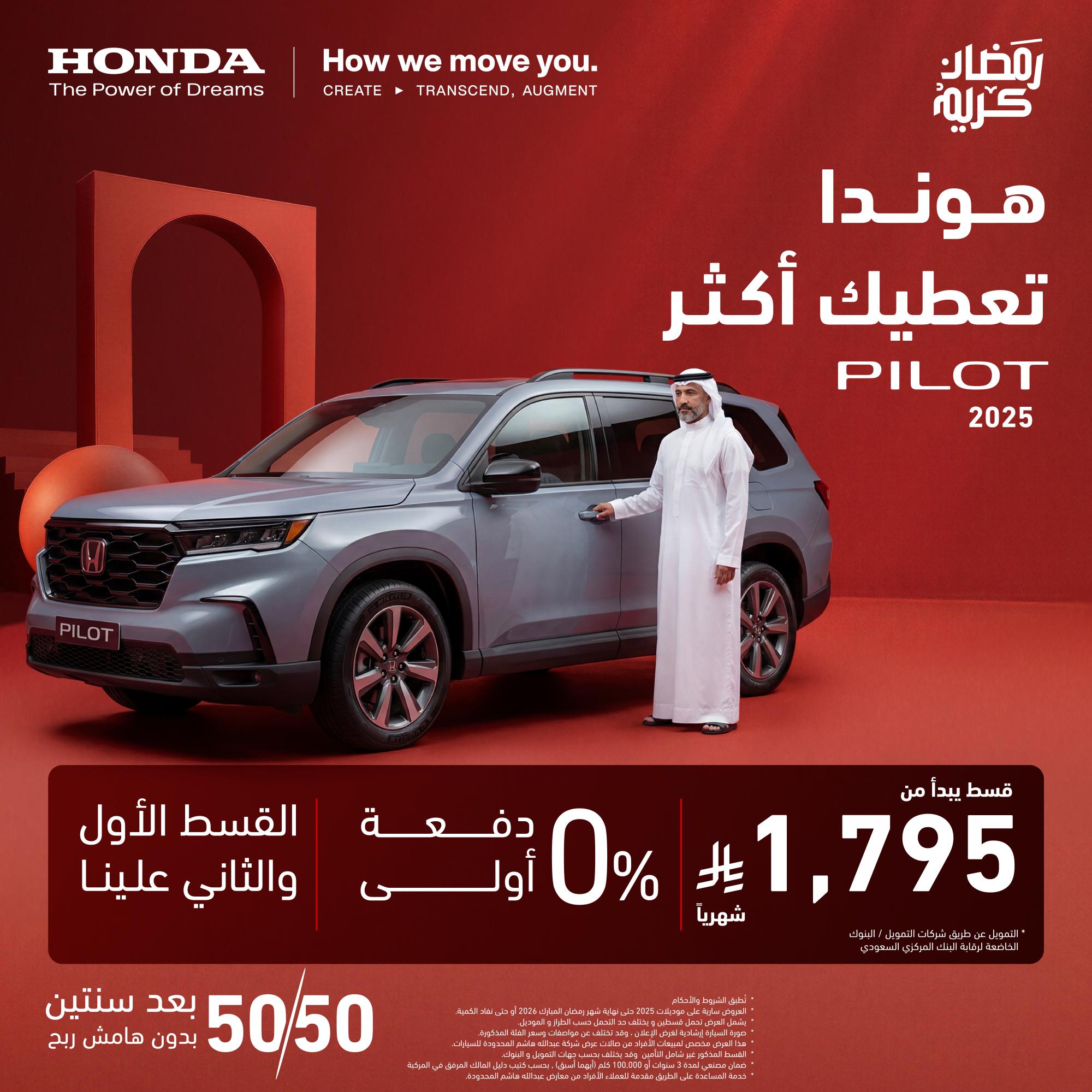 وصلت بايلوت الجديدة ووصل معها التصميم الخالي من أي تنازل الذي يتَّحد مع مزايا جديدة عالية الملاءمة. وبفضل تقنيانتها المتطوّرة من نظام دفع ثنائي ونظام دفع رباعي ونظام الاستشعار من هوندا المتوفر الآن في فئة touring، ترتقي هذه السيارة الرياضية متعددة الاستخدامات (SUV) العائلية إلى مستويات جديدة. تم تصميم الشكل الخارجي الأكثر جرأة لكي يشدّ الأنظار إليه، وجاء متكاملاً مع القسم الداخلي المواكب كلّياً للعصر الرقمي. ليس عجيباً على الإطلاق أن تحدث مثل هذه الضجة.