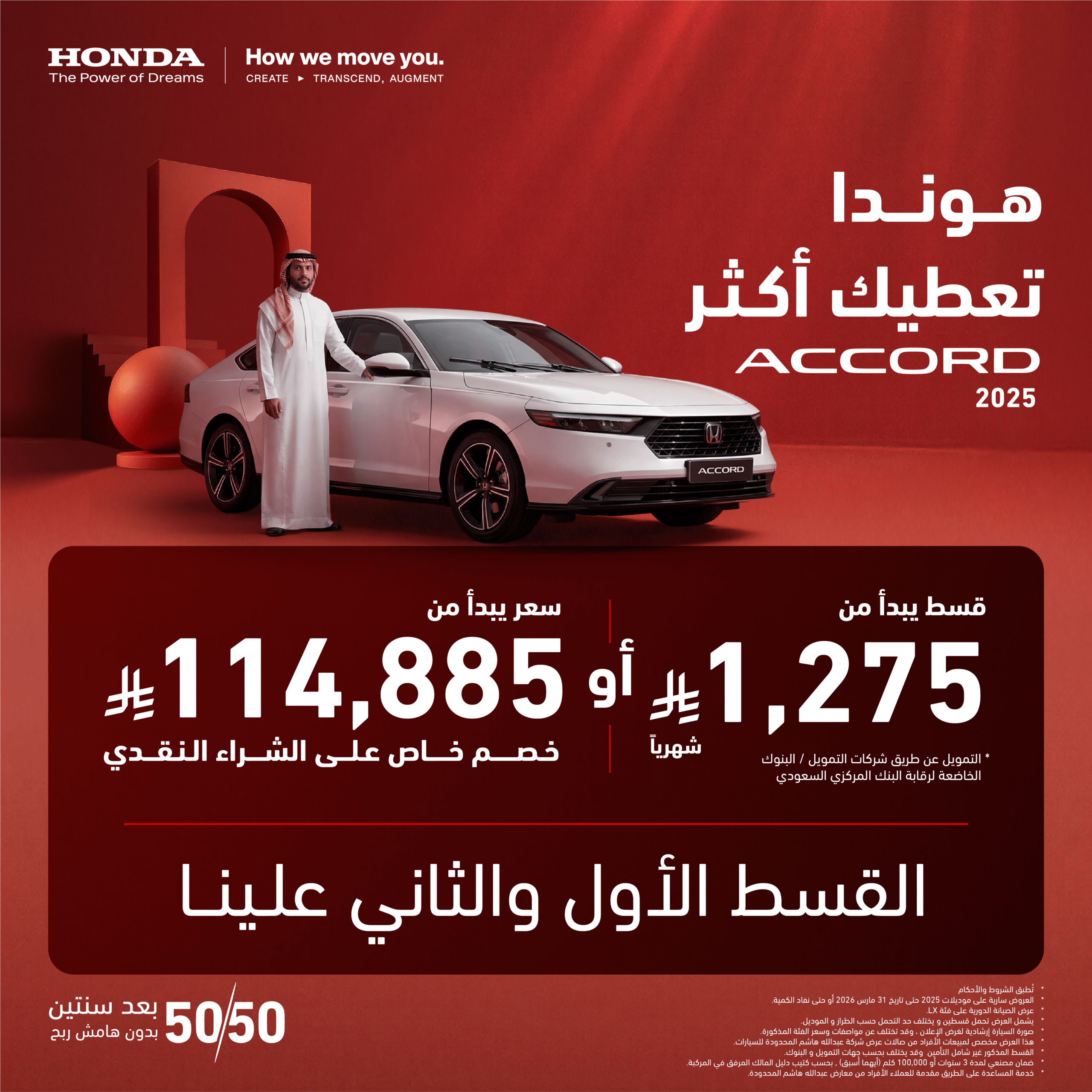 خطوط ديناميكية ورياضية للهيكل، شكل تم تحديثه ورياضي للواجهة الأمامية وتصاميم أنيقة وجديدة للعجلات… هذه بعض من مزايا أكورد التي أعيد تصميمها مع إطلالة سيارة سيدان عصرية وراقية.