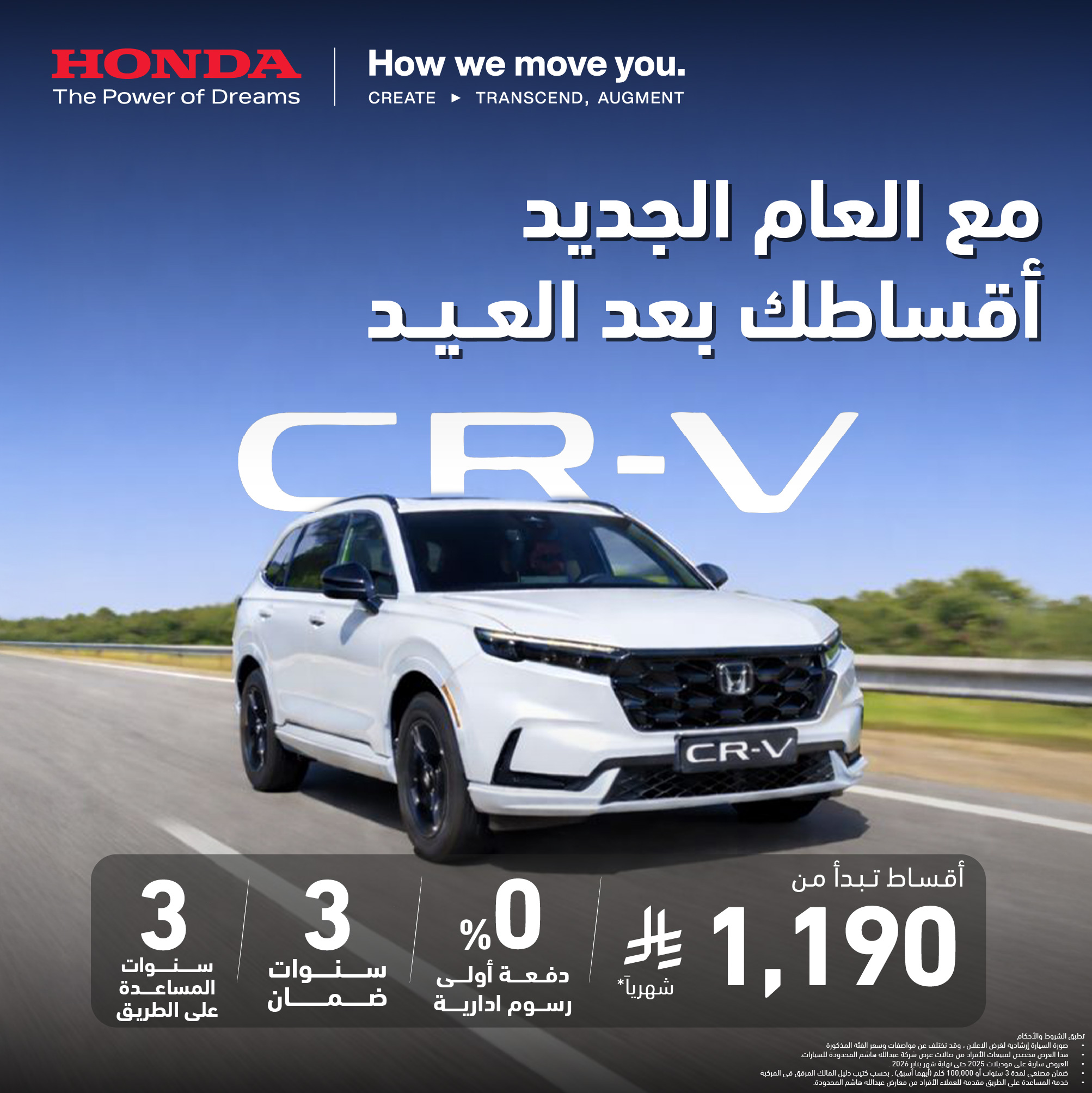 إنها السياره التي وضعت تعريفا لفئتها والآن تعيد تحديد كيف تكون السيارة الرياضية متعددة الاستخدامات المدمجة. اليوم نقدم هوندا CR-V في تصميم وهندسة جديدين لتوفر ثراء في المزايا القياسية مع ملاءمة عالية لكل من السائق والركاب. أهلاً بكم في معايير جديدة للراحة، الأناقة وتعدد الاستخدامات.