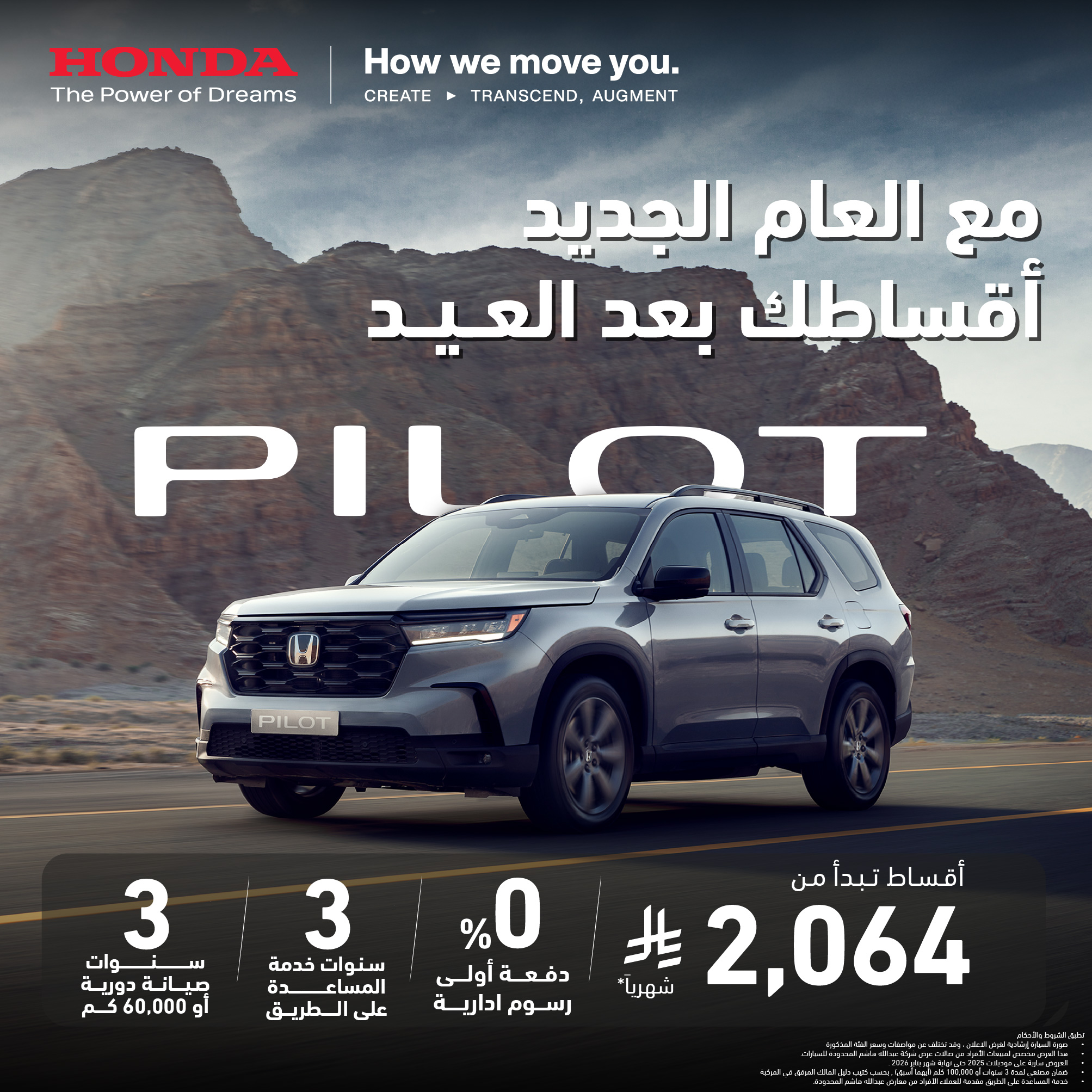 وصلت بايلوت الجديدة ووصل معها التصميم الخالي من أي تنازل الذي يتَّحد مع مزايا جديدة عالية الملاءمة. وبفضل تقنيانتها المتطوّرة من نظام دفع ثنائي ونظام دفع رباعي ونظام الاستشعار من هوندا المتوفر الآن في فئة touring، ترتقي هذه السيارة الرياضية متعددة الاستخدامات (SUV) العائلية إلى مستويات جديدة. تم تصميم الشكل الخارجي الأكثر جرأة لكي يشدّ الأنظار إليه، وجاء متكاملاً مع القسم الداخلي المواكب كلّياً للعصر الرقمي. ليس عجيباً على الإطلاق أن تحدث مثل هذه الضجة.